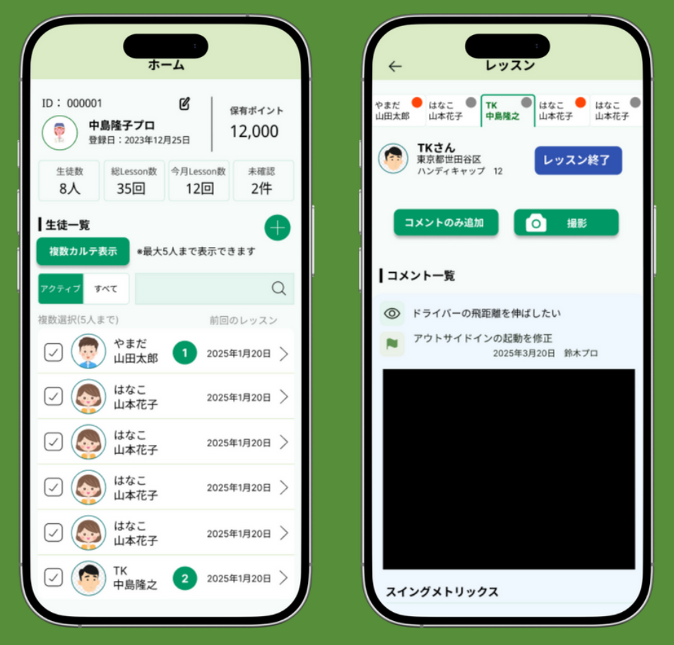 記録した内容を他のレッスンプロへの引き継ぎや生徒へのフィードバックに利用できる